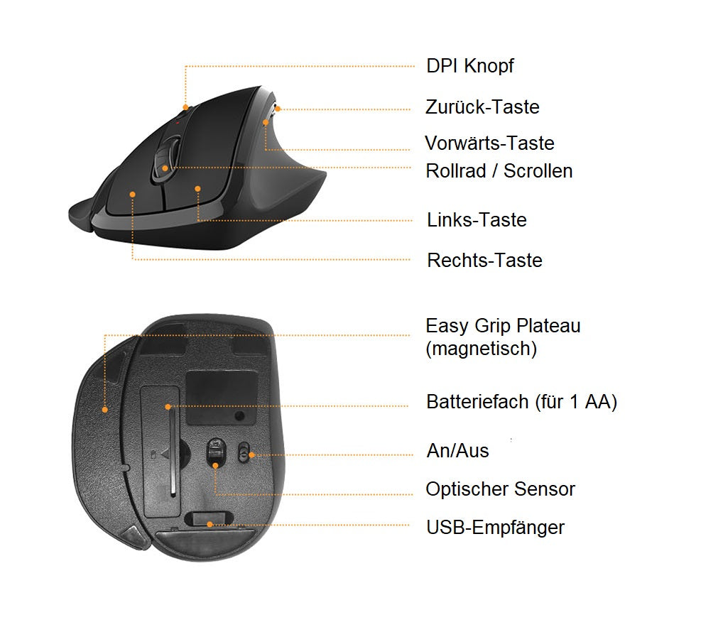 Mit 3 einstellbaren DPI-Werten (1000-1600-2000) kann die ergoleben Vertikal Maus mit nur einer Taste auf jede Geschwindigkeit und Genauigkeit angepasst werden. Sie ist optimal auf fast jeder Oberfläche und ideal auch für Gamer und Viel-Surfer. Hinzu kommen die Links- und Rechtstasten sowie die Vorwärts- und Rückwärts-Tasten (z.B. für Browsing auf Websites) und das Scrollrad. Die kabellose Maus ist sowohl mit Windows OS als auch Mac OS kompatibel.