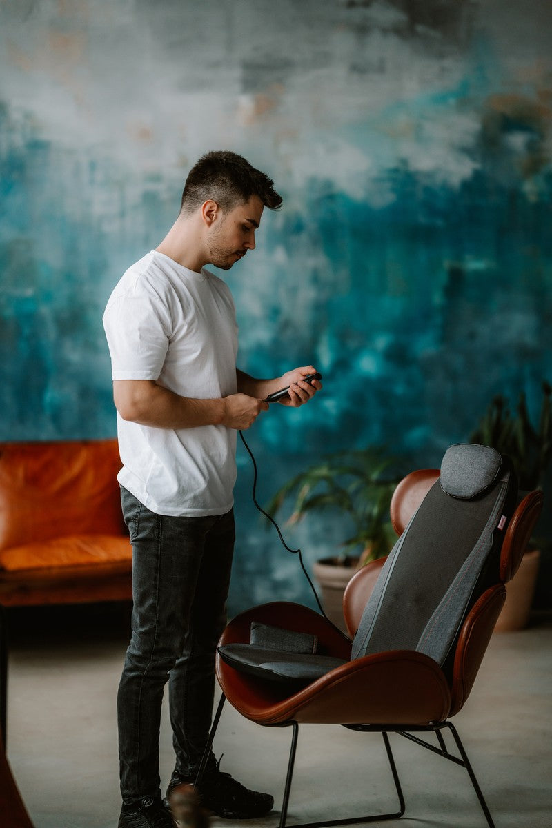 Die integrierte Fernbedienung macht die Bedienung kinderleicht. Wählen Sie mit nur einem Finger den gewünschten Modus und die Intensität. Dank des Timers und der automatischen Programme wird die ideale Massagedauer und Intensität für Sie ausgewählt – bequem und effektiv.